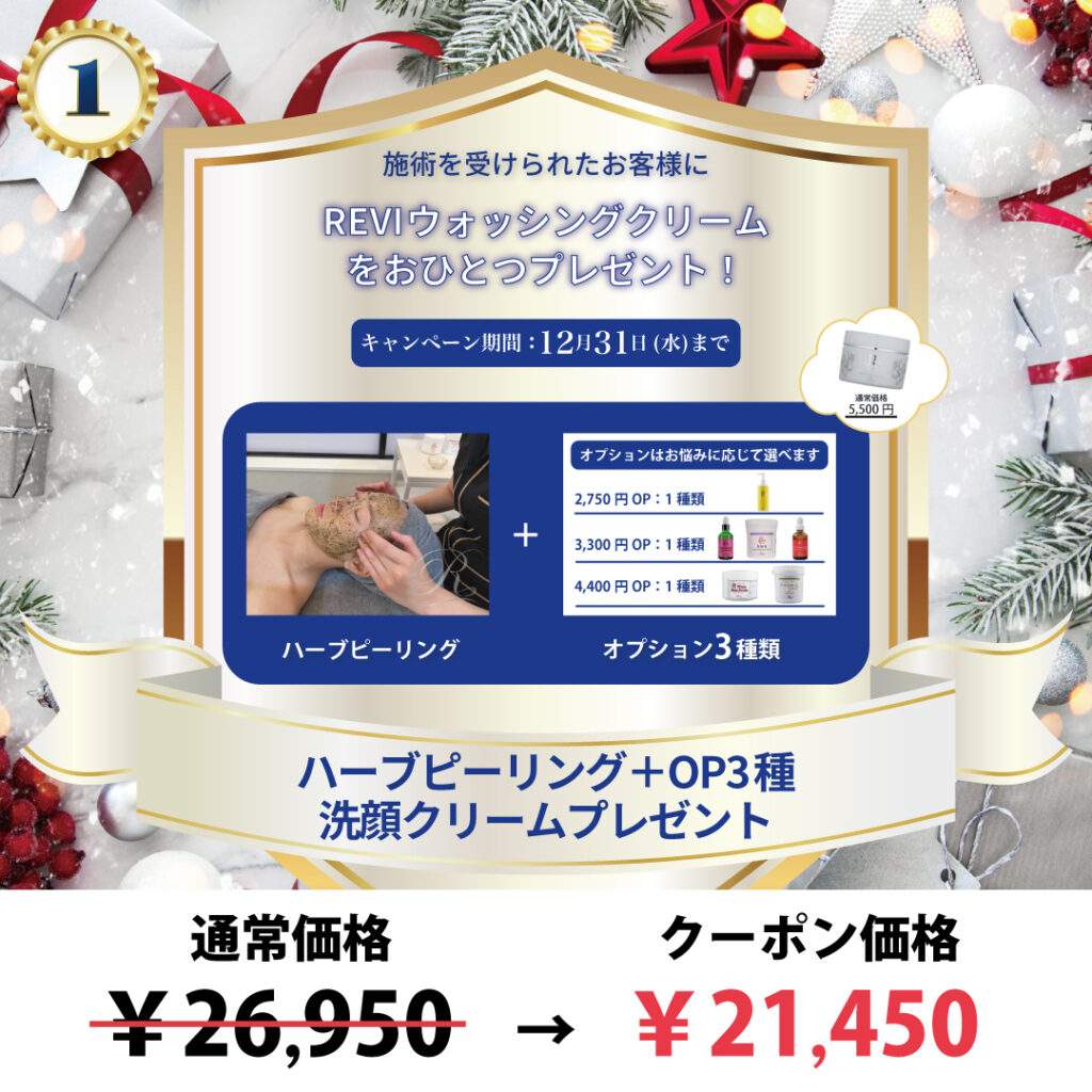 ①ハーブピーリング+OP3種/洗顔クリームプレゼント¥26,950→¥21,450