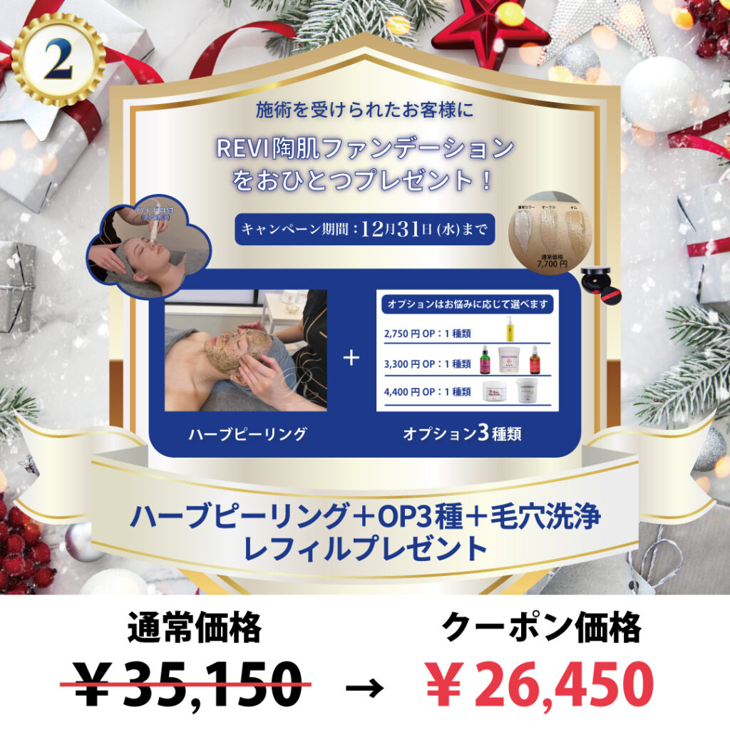 ②ハーブピーリング+OP3種+毛穴洗浄/ファンデレフィル3種類の中からおひとつプレゼント¥35,150→¥26,450